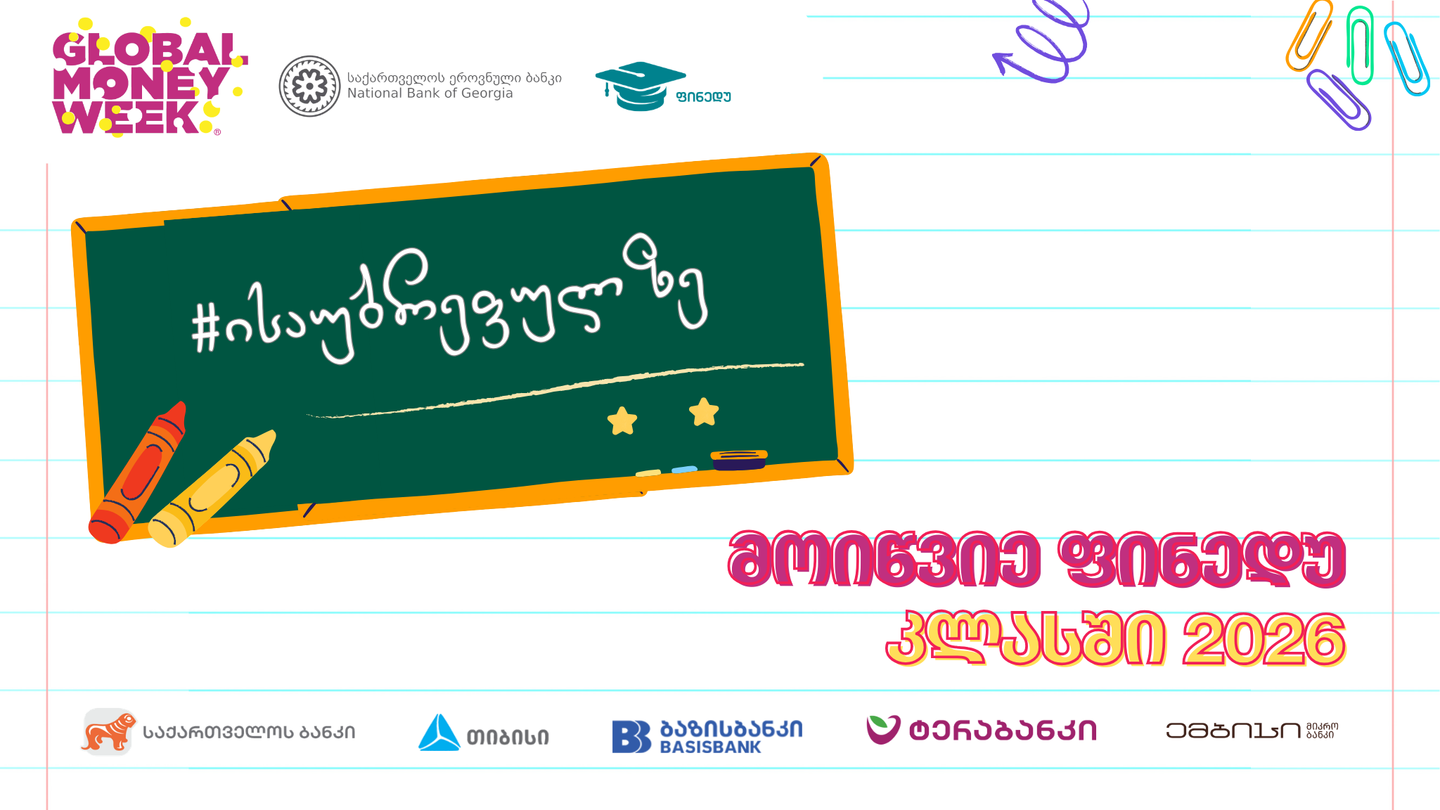 2026 წლის ფულის გლობალური კვირეულის თემატიკა ახალგაზრდებში ფულთან დაკავშირებულ საკითხებზე ღია საუბარსა და ინფორმაციის გაზიარების მნიშვნელობაზე ამახვილებს ყურადღებას. მისი მიზანია, ახალგაზრდებს გაუძლიეროს თავდაჯერება ფინანსურ გადაწყვეტილებებში, წაახალისოს სწორი კითხვების დასმა და ფინანსური განათლების საშუალებით დაეხმაროს უფრო გონივრული ფინანსური ჩვევების ჩამოყალიბებაში.
