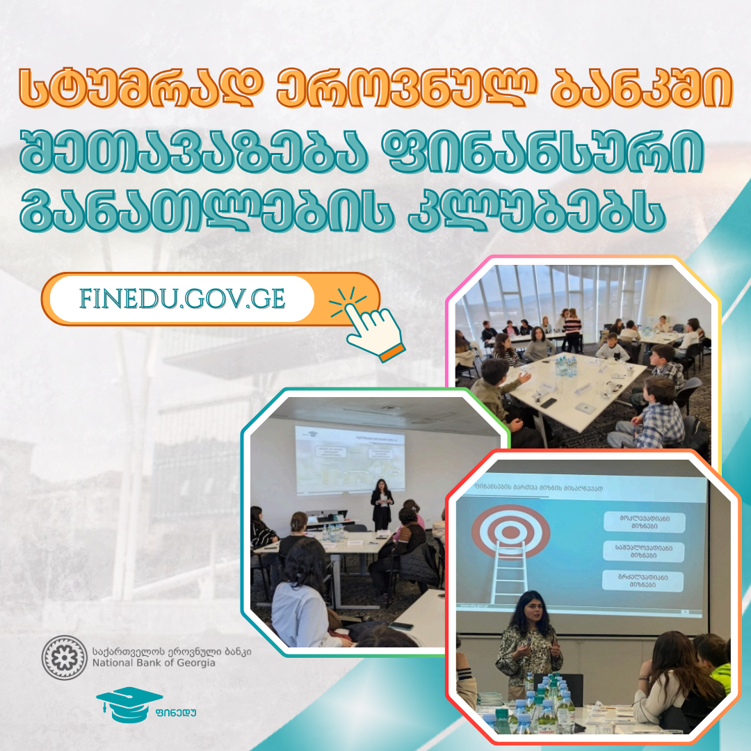 ფინანსური განათლების კლუბებთან შეხვედრები წლის ბოლომდე, დარეგისტრირებულთა რიგითობის გათვალისწინებით დაიგეგმება.