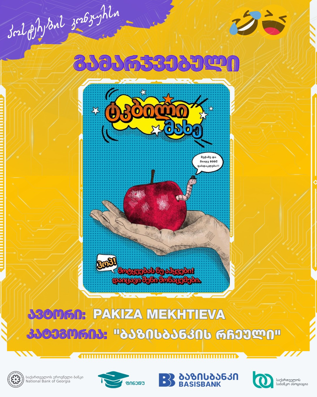 დღეს, 30 ოქტომბერს 4 გამარჯვებულის ვინაობა გახდა ცნობილი. მათგან ერთი, მომხმარებლების რჩეული, ფინედუს ფეისბუქგვერდის შესაბამისი პოსტის კომენტარებში ატვირთულ ნაშრომზე დაფიქსირებული ფეისბუქრეაქციებით (2025 წლის 29 ოქტომბრის 18:00 საათის მდგომარეობით) გამოვლინდა, ერთი რჩეული გამოავლინა ბაზისბანკმა, ორი რჩეული გამოავლინა სპეციალურმა ჟიურიმ. გამარჯვებულები დაჯილდოვდებიან 500 ლარიანი ფულადი პრიზით. გამარჯვებულებს დააჯილდოვებს ბაზისბანკი. ფინედუ მადლობას უხდის ყველა კონკურსანტს დაინტერესებისა და მონაწილეობისათვის.