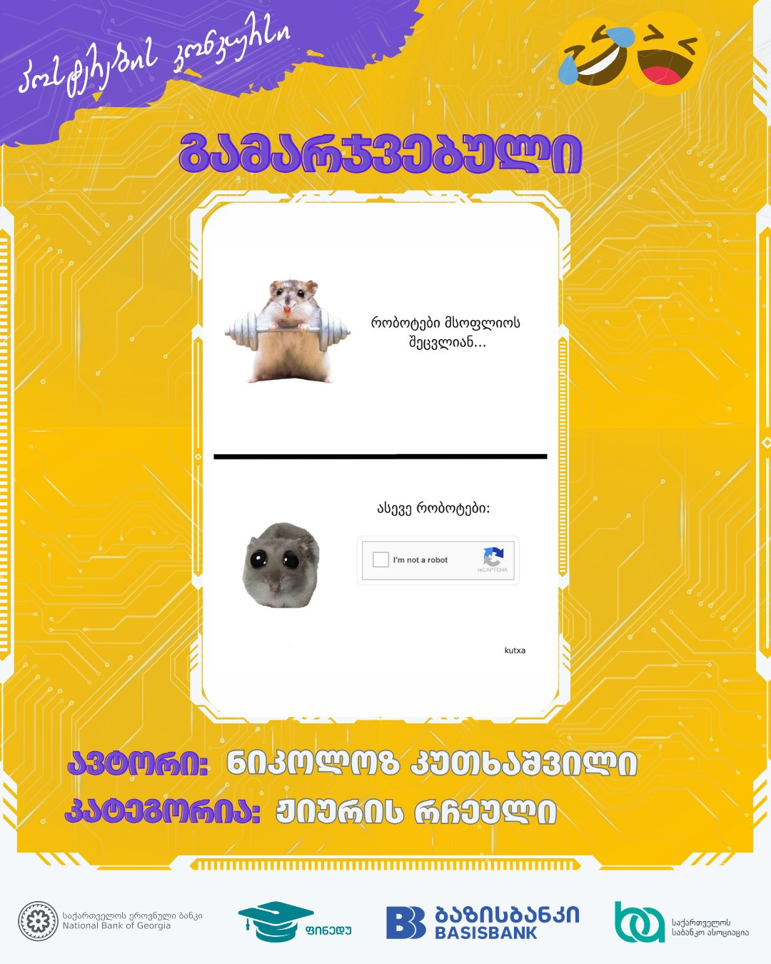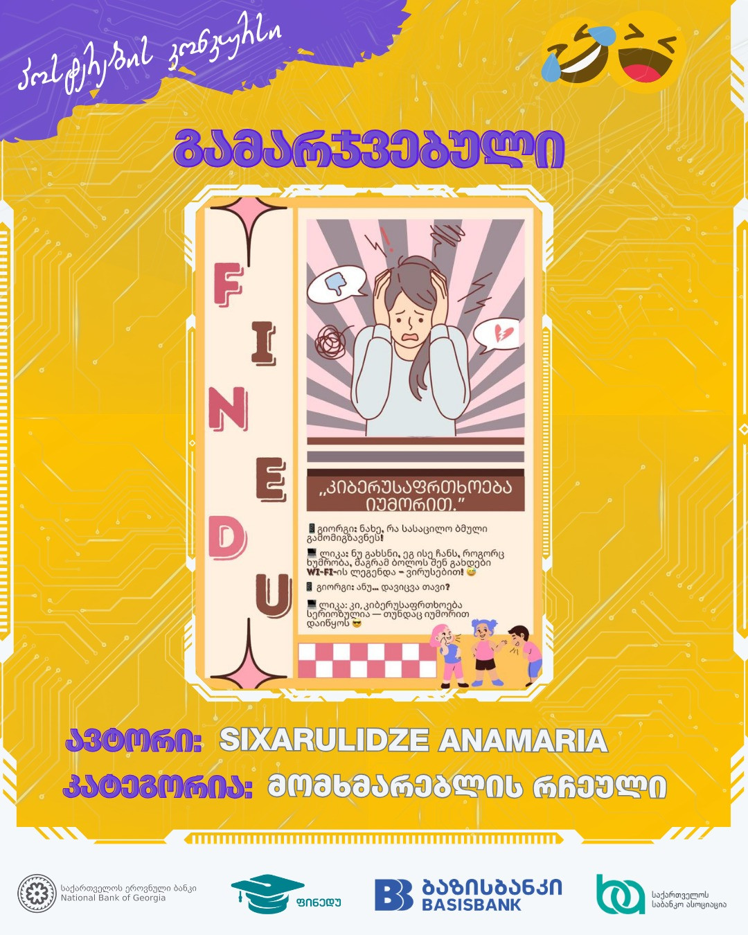 კონკურსში მონაწილეობის მიღება შეეძლოთ საქართველოში მცხოვრებ ნებისმიერ ფიზიკურ პირს. კონკურსის ფარგლებში მონაწილეებს უნდა შექმნათ ვიზუალური მასალა (პოსტერი/ბანერი), რომლებიც შემოქმედებითად, ინფორმაციულად და სახალისოდ წარმოაჩენდა კიბერუსაფრთხოებისა და ფინანსური უსაფრთხოების მნიშვნელოვან თემებს. კონკურსის ფარგლებში 140-მდე ნაშრომი შემოვიდა, რომელთაგან 50-მდე ნაშრომი აკმაყოფილებდა კონკურსში მონაწილეობის პირობებს.