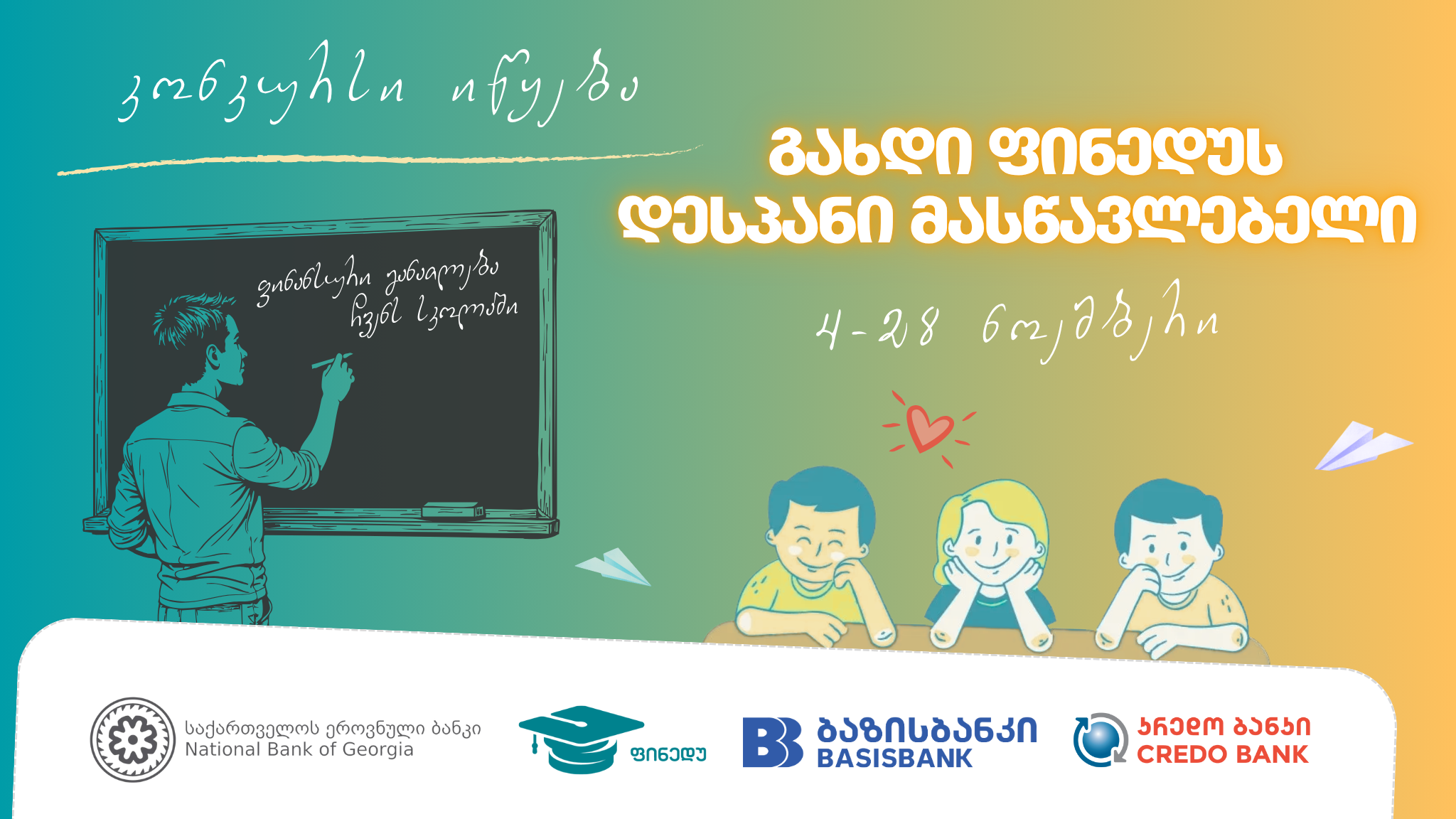 კონკურსი გულისხმობს მასწავლებლების მიერ თავიანთ სკოლებში ფინედუს მიერ მოწოდებული მასალებისა და ინსტრუქციის საფუძველზე 1 გაკვეთილის ჩატარებასა და ამის შესახებ საკუთარ ფეისბუქის გვერდზე პოსტის განთავსებას. პირველი 30 მასწავლებელი საჩუქრად წიგნების მაღაზიის 100 ლარიან ვაუჩერს მიიღებს, ყველა მონაწილეს კი ელექტრონულად ფინედუს დესპანი მასწავლებლის სერტიფიკატი გაეგზავნება.