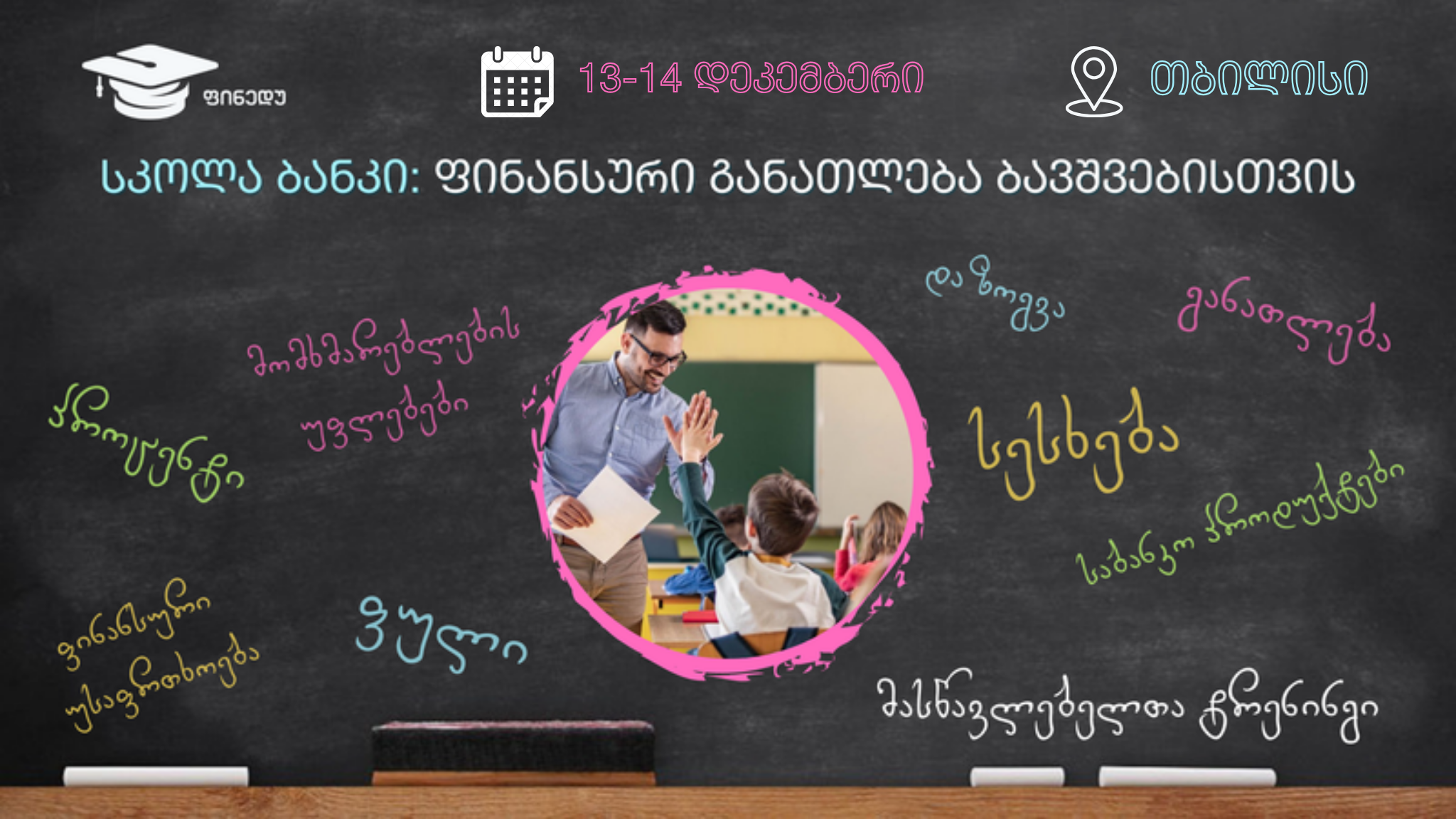 - მასწავლებლების მიერ საკუთარი მოსწავლეებისთვის „სკოლა-ბანკის“ მოდულით გათვალისწინებული 15 გაკვეთილის ჩატარებას.