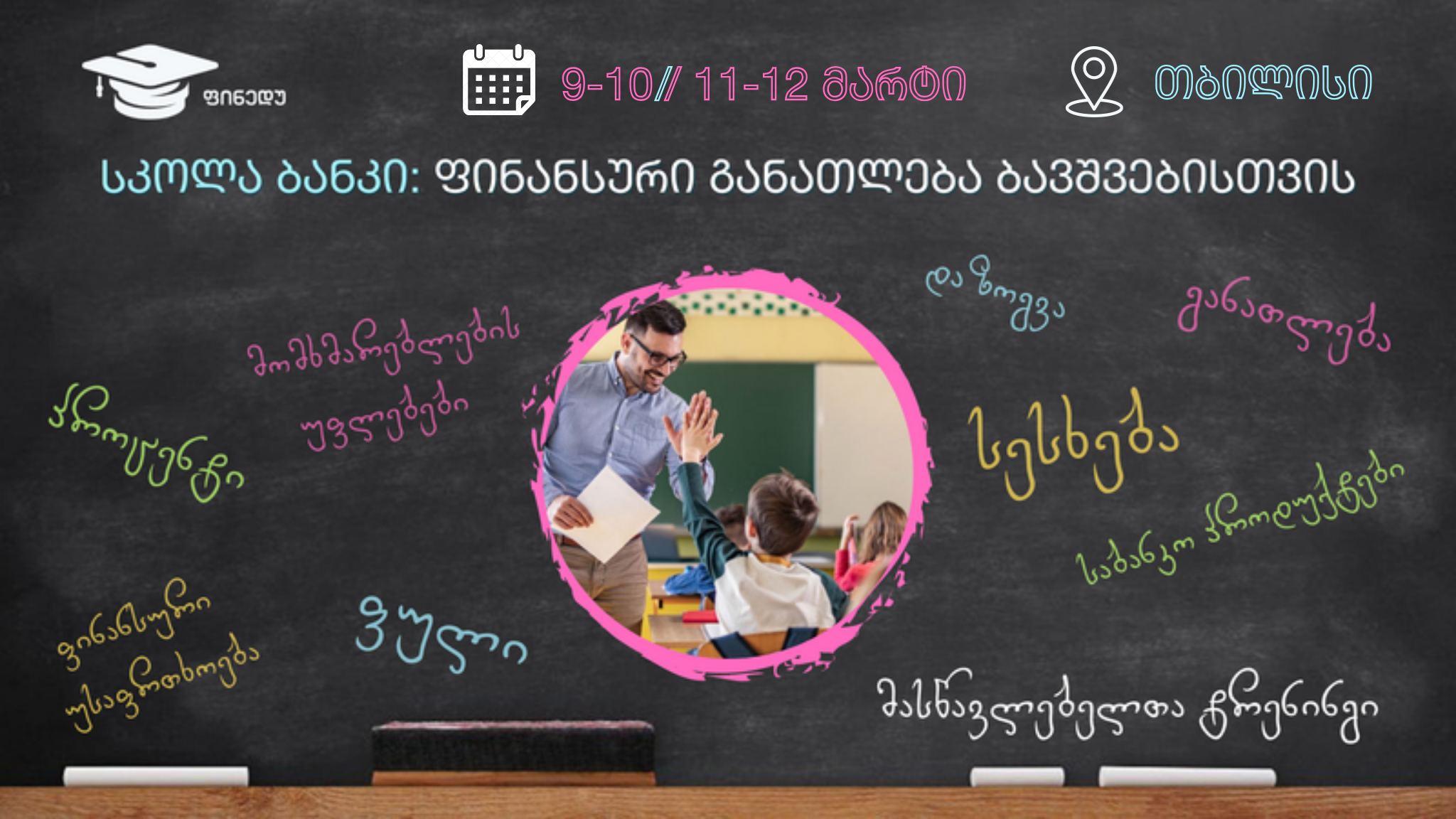 - მასწავლებლების მიერ საკუთარი მოსწავლეებისთვის "სკოლა-ბანკის" მოდულით გათვალისწინებული 15 გაკვეთილის ჩატარებას.